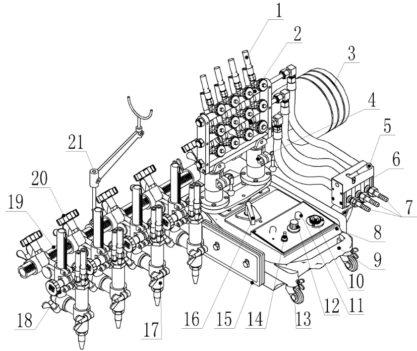 l GCD3-100型多頭直條切割機有3組有效割炬。